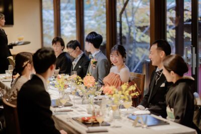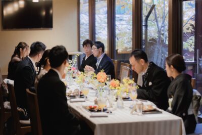 披露宴では 堅苦しくなくみんなでわいわい話せるようゆっくりお食事