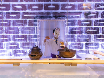 狐に誘われる幻想的な氷の空間。すべてが氷で設えられたカウンターで職人が握る一貫に酔いしれる。静寂の中で堪能するここだけの特別な寿司体験を。